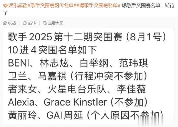 而参与解围赛的歌手,有一轮游的揭榜失败者,有参与屡次的首发歌手,更有目下还在舞台保抓高排名唱将,他们即是:
