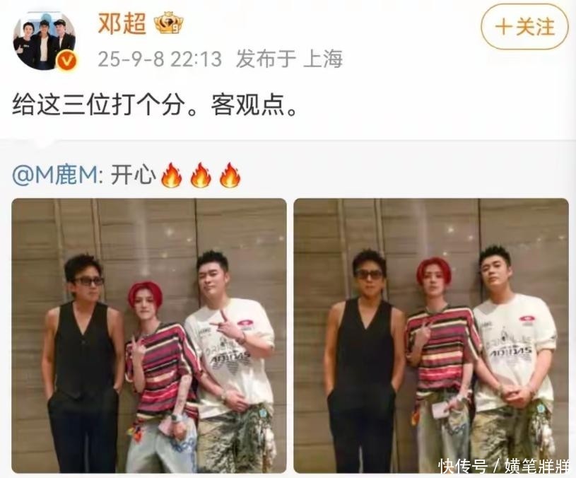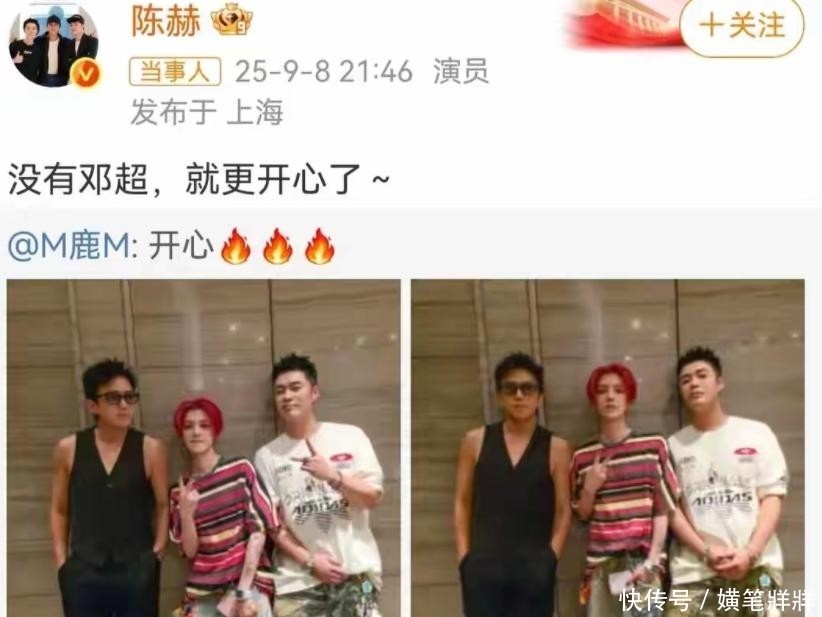 随后,邓超与陈赫也接踵发布了与鹿晗疏浚的合照。