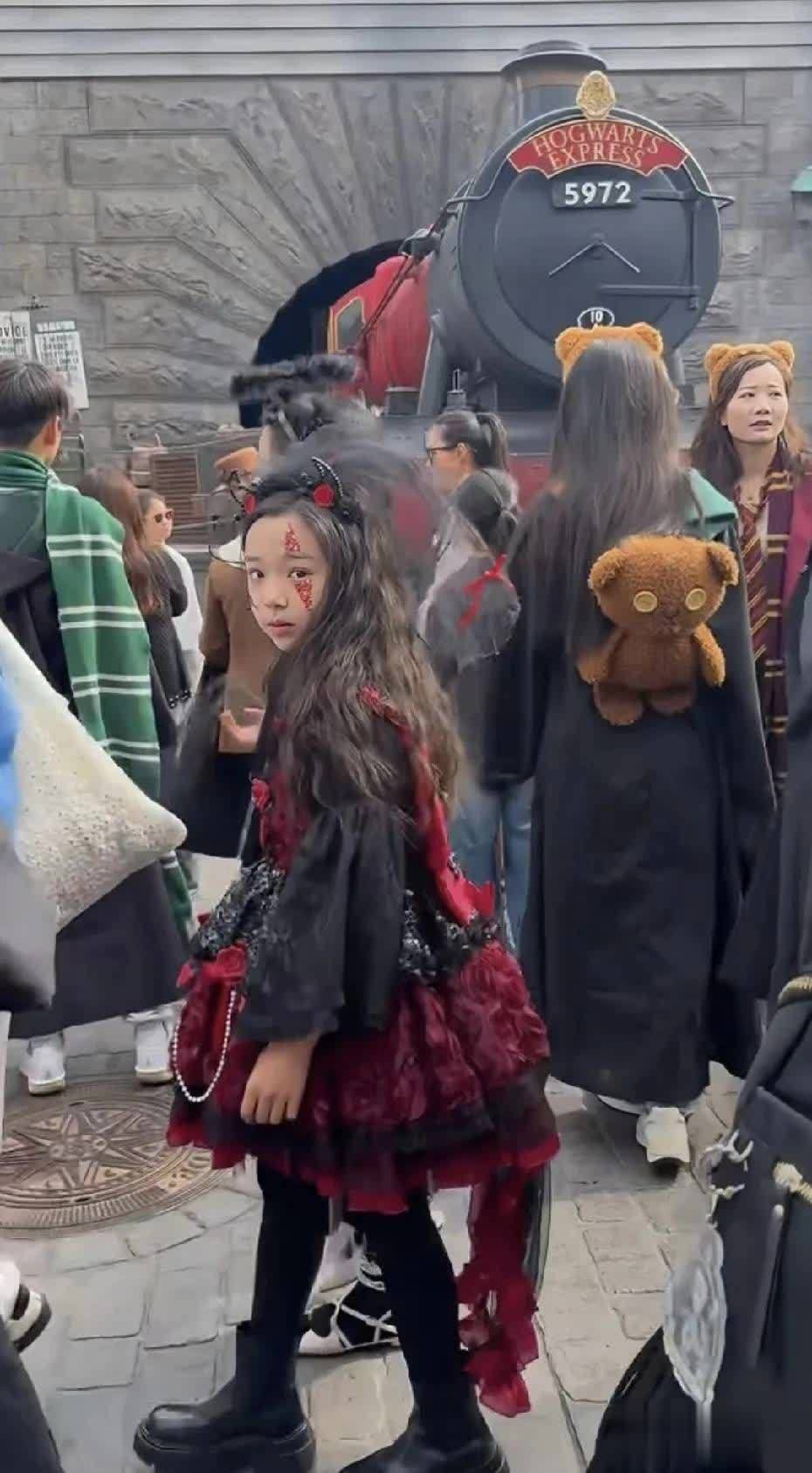 中秋假期的北京环球影城太骚动,不少网友偶遇了董璇和佟丽娅,这对多年闺蜜带着各自的娃小酒窝、朵朵来这儿过节,画面太温馨了。图片来自汇注俩小一又友的造型超吸睛,小酒窝穿了红
