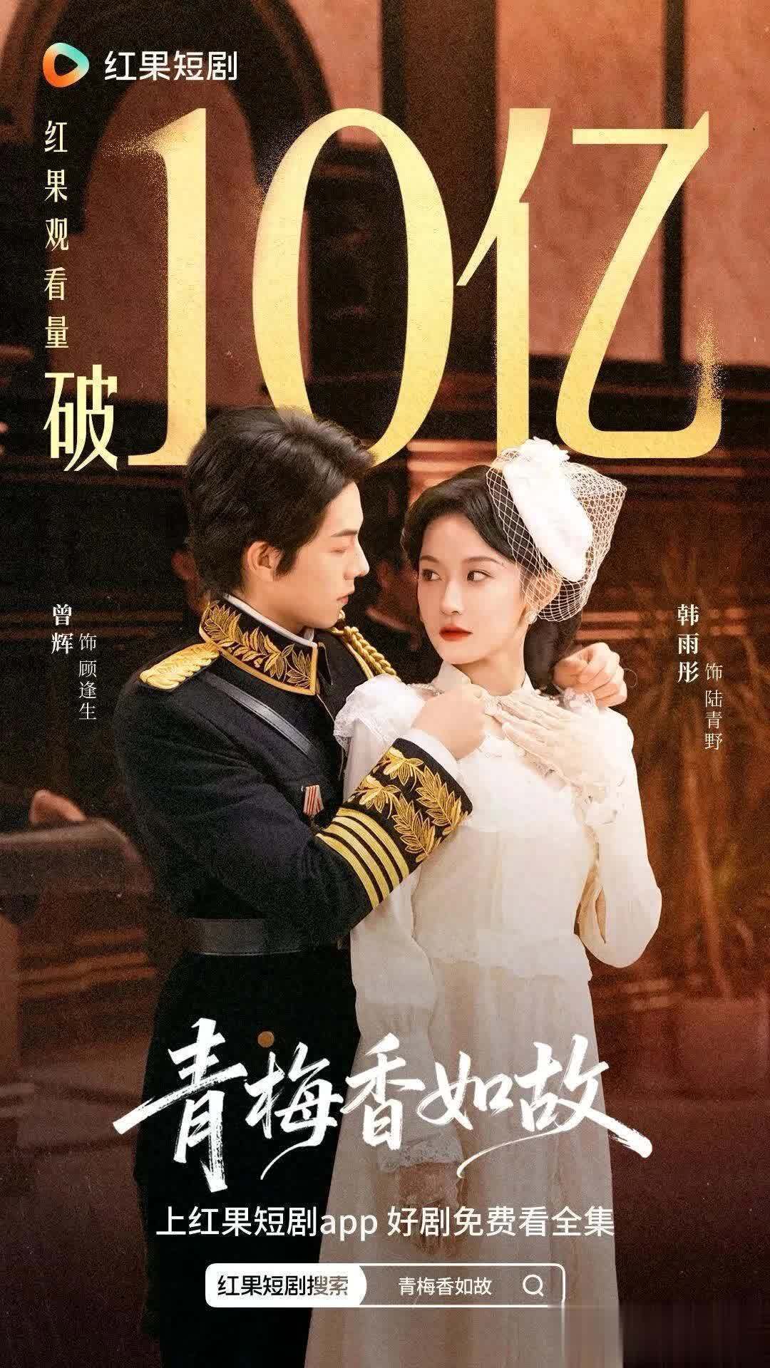 曾辉、韩雨彤主演的民国爱情短剧《青梅香还是》在红果的不雅看量如故温和了10亿,成为2026年红果首部播放量破10亿的爆款短剧。