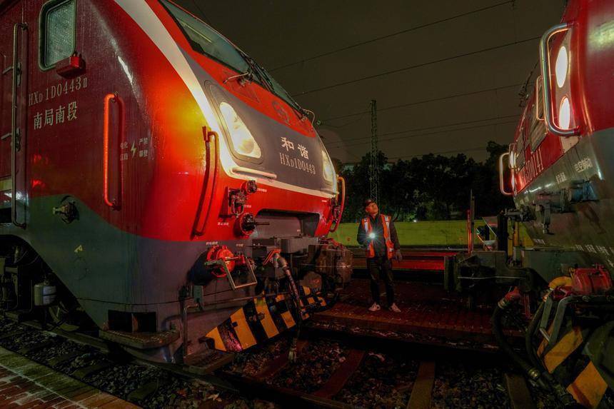 南昌机务段整备车间整备组工长互助整备功课。中国铁路南昌局集团有限公司南昌机务段整备场深夜灯火通后。为筑牢春运机车安全防地,保险游客祥瑞返乡,磨砺东说念主员穿梭在机车间,手抓器具、精检细修,以专科的妙技对机车每一处零件、每一个部位进行全方向排查,不放过任何狭窄安全隐患尊龙凯龙时官网,用效能与匠心为列车安全运转添砖加瓦,让春运归家之路更释怀、更顺畅。(胡燕)