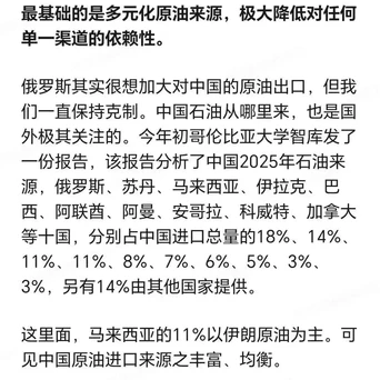 但中国这些年反复强调外洋形势复杂多变,原油天然早作念准备。包括开端多元化、加强策略储备、鼓励新动力转型等;新动力转型对原油供应的蹙迫性,还可看《认清大势,不要跟国度意识、全民利益对着干》一文。可见上方截图二、三。