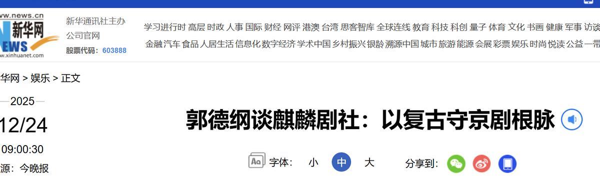 《郭德纲谈麒麟剧社:以维合手守京剧根脉》(新华网)